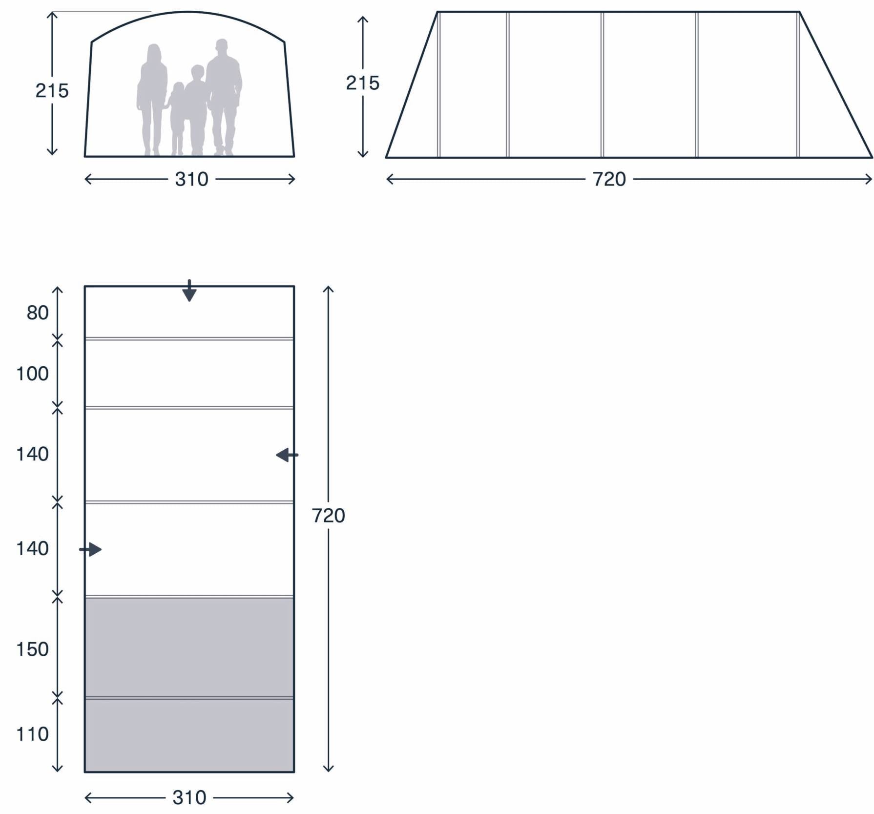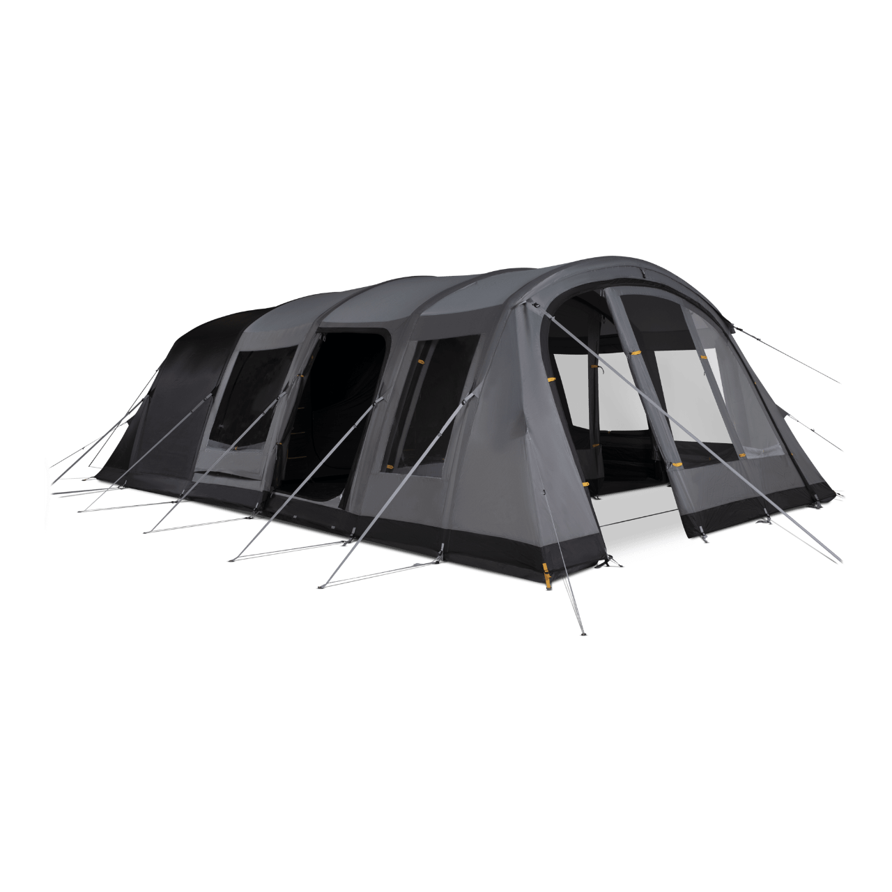 The Kampa Saunton 4 Air delivers genuine living space where most 4-berth tents fall short. Its dual-bay design creates a generously proportioned living area—eliminating the need to upsize to a 6-berth tent just for comfort. Built on Kampa's latest AIR Frame technology with 150D polyester fabric, this tunnel-profile tent pitches quickly and stands tall enough for genuine headroom. The layout prioritizes flexibility: a rear bedroom with removable partition for sleeping configuration options, plus a front living zone with horizontal walls that maximize usable floor space. Dual entry points with mesh screens manage ventilation and insects without sacrificing airflow. The integrated front canopy extends your outdoor living, whilst the stable door and roll-up side panel adapt to weather—sealed against rain, open to breezes when conditions allow. Low and high ventilation points and darkened bedrooms keep you comfortable through variable conditions. Ideal for couples and families seeking a practical, spacious base camp without compromise.