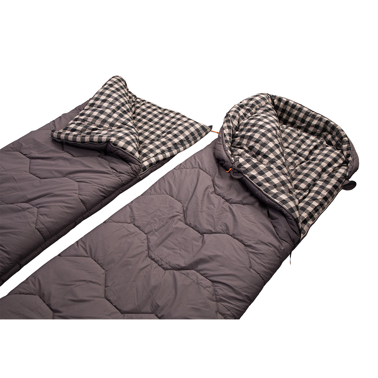 The Aurora Kingsize delivers exceptional versatility for those who demand premium sleeping solutions. This three-season bag exceeds standard double dimensions, providing generous space for ultimate relaxation. Its sophisticated dual-layer construction—featuring a luxurious 100% cotton flannel interior paired with a robust polycotton shell—maintains reliable warmth across variable seasons. A distinctive feature allows the bag to separate into two independent single units, adapting seamlessly to evolving camping requirements. The refined checked design complements any outdoor aesthetic, whilst the superior craftsmanship ensures this investment withstands years of adventure. Perfect for campers and caravanners seeking flexibility without sacrificing comfort or quality.