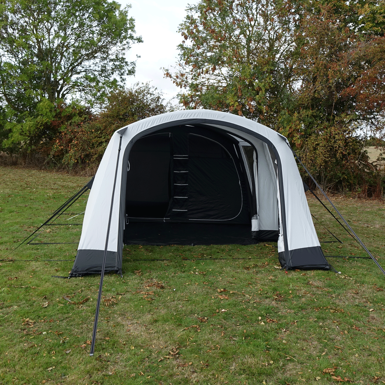 The built-in front enclosure provides excellent protection against rain and wind, creating a versatile living area that can be enjoyed in all seasons. For warmer days, the large mesh secondary front panel dramatically improves airflow while keeping insects out. A secondary mesh panel behind the side door window enhances ventilation even further, ensuring a fresh and pleasant environment throughout your stay.