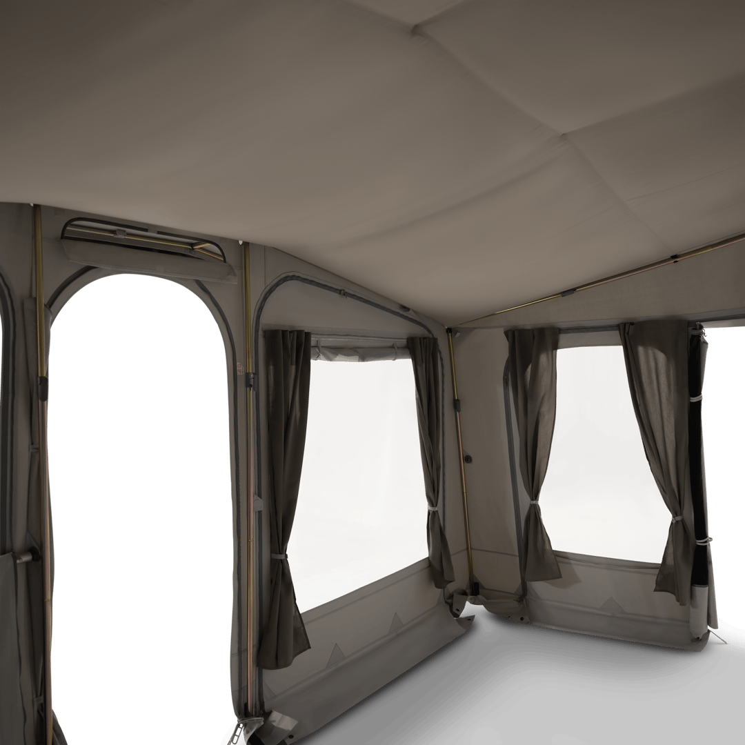 Enjoy seasonal comfort with the Dometic Stuga Rest—our first poled full caravan awning. Crafted from 100% dope-dyed polypropylene, it’s UV-resistant, waterproof and easy to clean. Features include apex ventilation, large windows, a central door, zipped external blinds and removable curtains. Adjustable steel poles provide stability, with a spacious 250 cm depth.