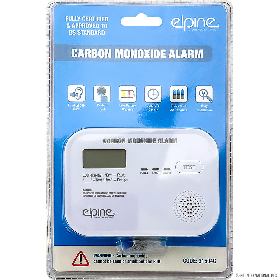 An electromechanical carbon monoxide alarm for use in motorhome & Caravans fitted with gas appliances. This life saving device alerts the user to the presence of deadly carbon monoxide gas. The alarm is battery powered.
