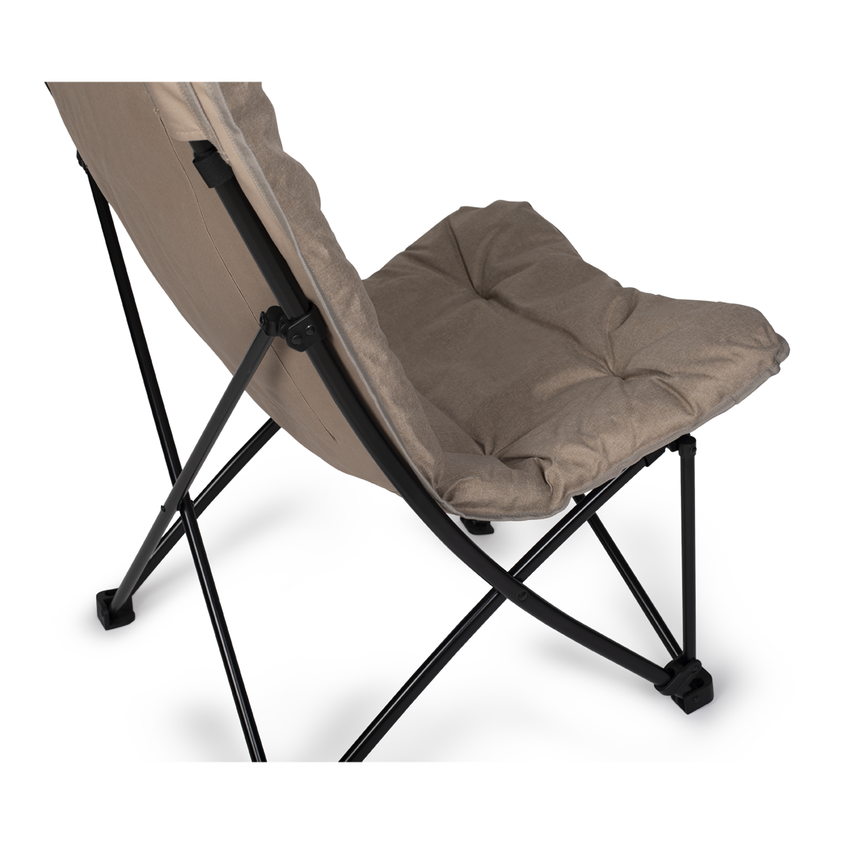 Snuggle up under the stars in our cosy Chill chair. This seat combines serious comfort with campsite practicality – luxurious padding meets a sturdy steel frame construction. It folds into its own bag because the best adventures are shared ones, and comfort should never be left behind.