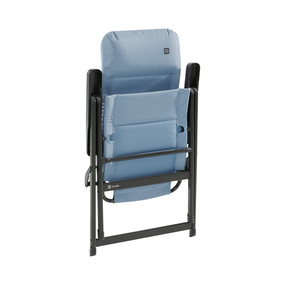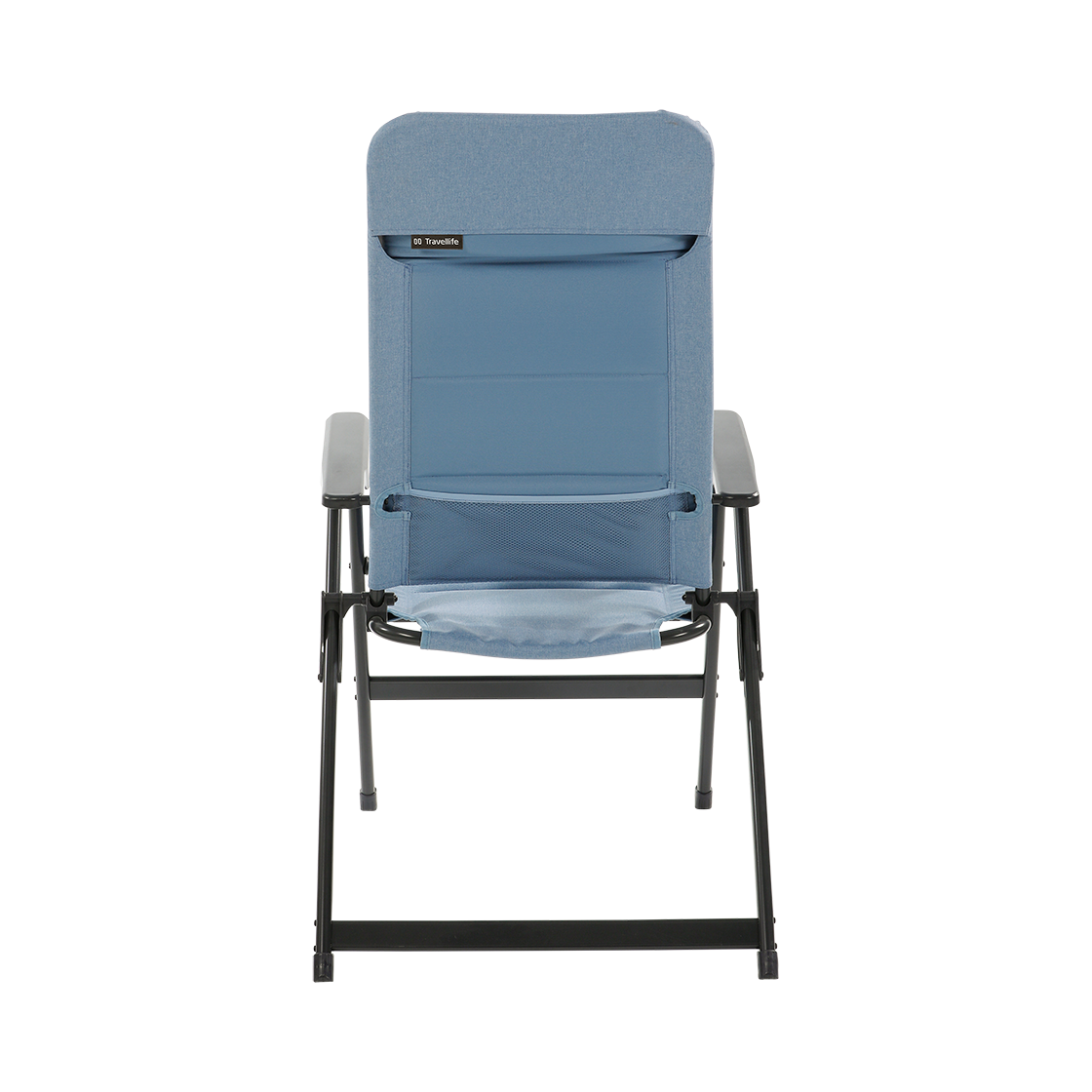 With the Travellife Lago recliner comfort, you benefit from a lightweight aluminium frame and a slim design. These features make the chair ideal to take with you and transport in your camping vehicle, where it takes up little space. Want to sit and eat at the table with the camping chair or stretch out and enjoy the sun? It's all possible with the Lago recliner! The backrest of the chair is adjustable to no less than seven different positions. At the same time, you enjoy excellent seating comfort, thanks to the comfortable padding. The adjustable camping chair has a weight capacity of 120 kg.
